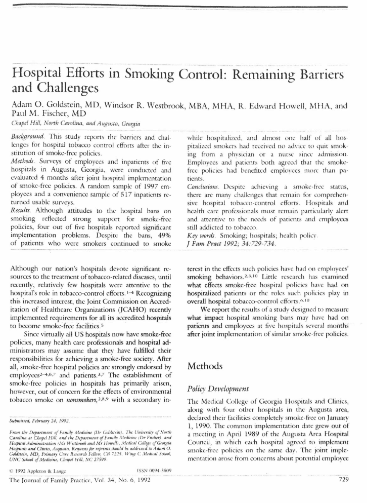 “The medical staff at Mt. Sinai Hospital in Hartford recently voted to outlaw smoking at all staff meetings, but also provided a five-minute break for smokers. The Methodist Hospital in Houston, Harper Hospital in Detroit and Arlington Hospital in Virginia have offered matchbook covers with the names of the hospital printed on them.