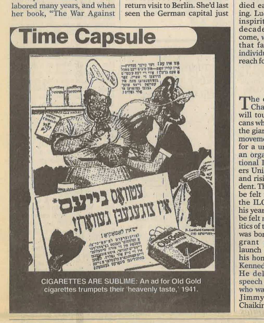 Advertisement by the P. Lorillard Tobacco Company for Old Gold cigarettes