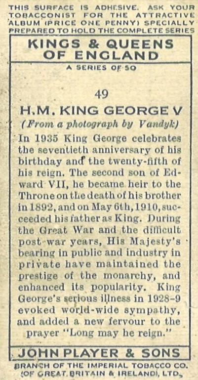 Cigarette trading card in the album The Reign of King George V