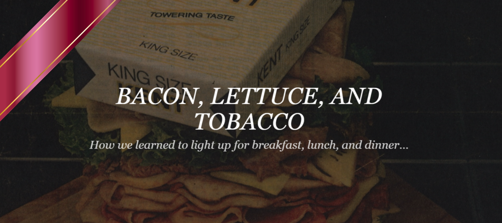 In 1900, cigarettes comprised less than 2% of tobacco product sales, but they would be popularized in World War I through free distribution by health charities to the boys in the trenches. On the home front, where meat and wheat were in short supply due to the needs of the military, The American Tobacco Company created a patriotic advertising campaign to encourage consumption of other fresh and delicious foods – like poached eggs on toast– likening them to the pleasures of a “toasted” Lucky Strike cigarette. Every major tobacco company would craft ad campaigns that associated cigarette smoking with food. In the 1930s R.J. Reynolds Tobacco Company’s advertisements for Camels featured elegantly dressed men and women of high society dining and smoking in America’s finest restaurants. The P. Lorillard Tobacco Company likened gourmet foods to Old Gold cigarettes in the 1930s and to Kent cigarettes in the 1980s. In the 1950s, The American Tobacco Company hired famed Disney artist Mary Blair to design a series of Pall Mall cigarette ads that associated the brand with fresh fruit, lobster, shrimp, and other delicacies. The culmination of the intermingling of cigarettes and food came in the late-1970s to the late-1980s with the acquisition of major food companies by Philip Morris and R.J. Reynolds to burnish their nicotine-stained image.